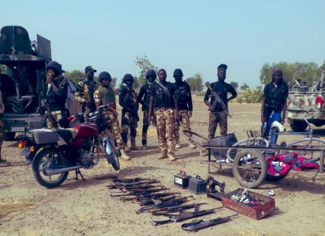 Nigerian army officers display the arms seized following a rescue operation in 2021. [photo: Nigerian army]