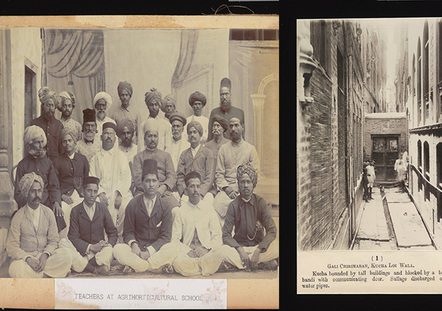 Teachers at the Agri-Horticultural School, Aurangabad, Deccan 1908 and Lahore town planning photograph 1928 [By kind permission of the CUL's Digital Library Collection].