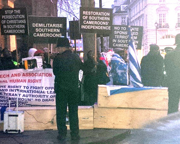 Southern Cameroon protest outside the Commonwealth Secretariat in 2018. [photo: Debbie Ransome]