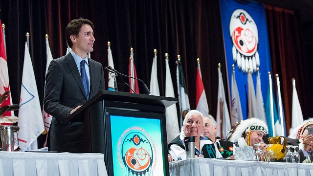Prime Minister Justin Trudeau delivers a speech to the Assembly of First Nations Special Chiefs Assembly in 2015 [source: Prime Minister of Canada.pm.gc.ca website]