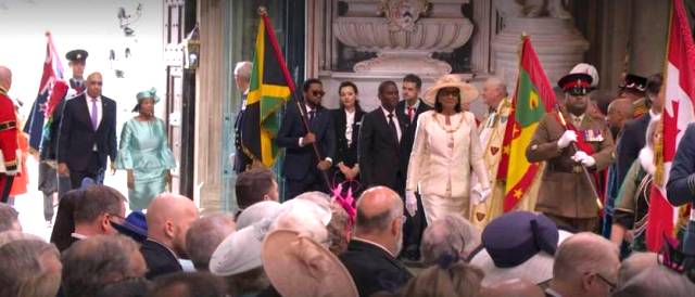 Commonwealth flags are brought into Westminster Abbey at the start of the 6 May Coronation ceremony. [photo: TV]